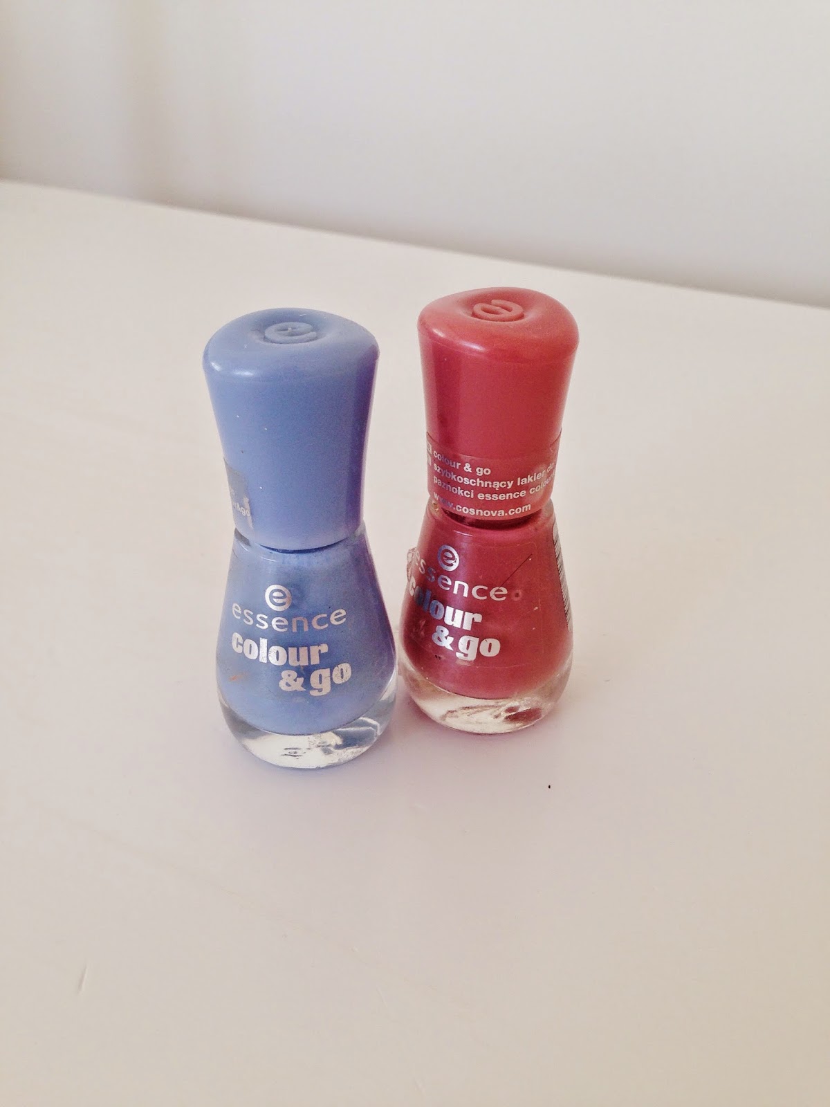 Lakiery "Essence - Color&Go". Fenomen. Cudowne kolory, trwałość, świetna aplikacja. Lakiery bardzo szybko zasychają, mozna mieć je wyjątkowo długo. Błękitny lakier który mogliście zobaczyć na zdjęciach, mam już jakieś dobre 2 lata, jak nie wiecej. Jego konsystencja nawet się nie zmieniła. Gama kolorystyczna tych lakierów poprostu mnie zachwyca. Wchodząc do sklepu i chcąc kupic piękny, różowy, niebieski czy jakikolwiek inny kolor lakieru, moge wybierać nawet spośród kilkunastu odcieni.
